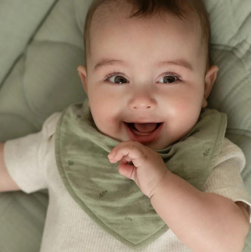 Houd de outfit van je kleintje droog én stijlvol tijdens het doorkomen van tandjes met deze bandana slab. De hydrofiele stof, gemaakt van 100% biologisch katoen, is heerlijk zacht voor het tere babyhuidje en absorbeert vocht, zodat je kindje droog en tevreden blijft. Deze set van twee slabbetjes is gevoerd en voorzien van twee drukknopen, waardoor ze eenvoudig verstelbaar zijn en meegroeien met je kleintje. Perfect om te mixen en matchen voor elke gelegenheid, zodat je baby er altijd modieus uitziet, waar je ook gaat. Deze bandana’s zijn uitgevoerd in een prachtige kleur met een subtiele, tijdloze print.