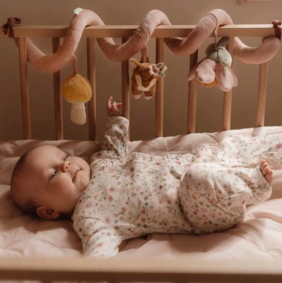 Kijk, voel en ontdek! Deze leuke en vermakelijke activiteitenspiraal zal baby’s zowel thuis als onderweg bezighouden. Bevestig dit praktische speelgoed eenvoudig aan alles van wieg tot box. Het versterkt de zintuigen en stimuleert de hand-oog coördinatie. De activiteitenspiraal is gemaakt van corduroy met katoen en draait om een klein hertje, een paddenstoeltje en een mooie bloem. WAARSCHUWING: Bevestig dit speelgoed buiten bereik van het kind. Om te voorkomen dat het kind verstrikt raakt, en zich bezeert, verwijder dit speelgoed wanneer het kind op handen en voeten begint te kruipen. Te monteren door een volwassene.