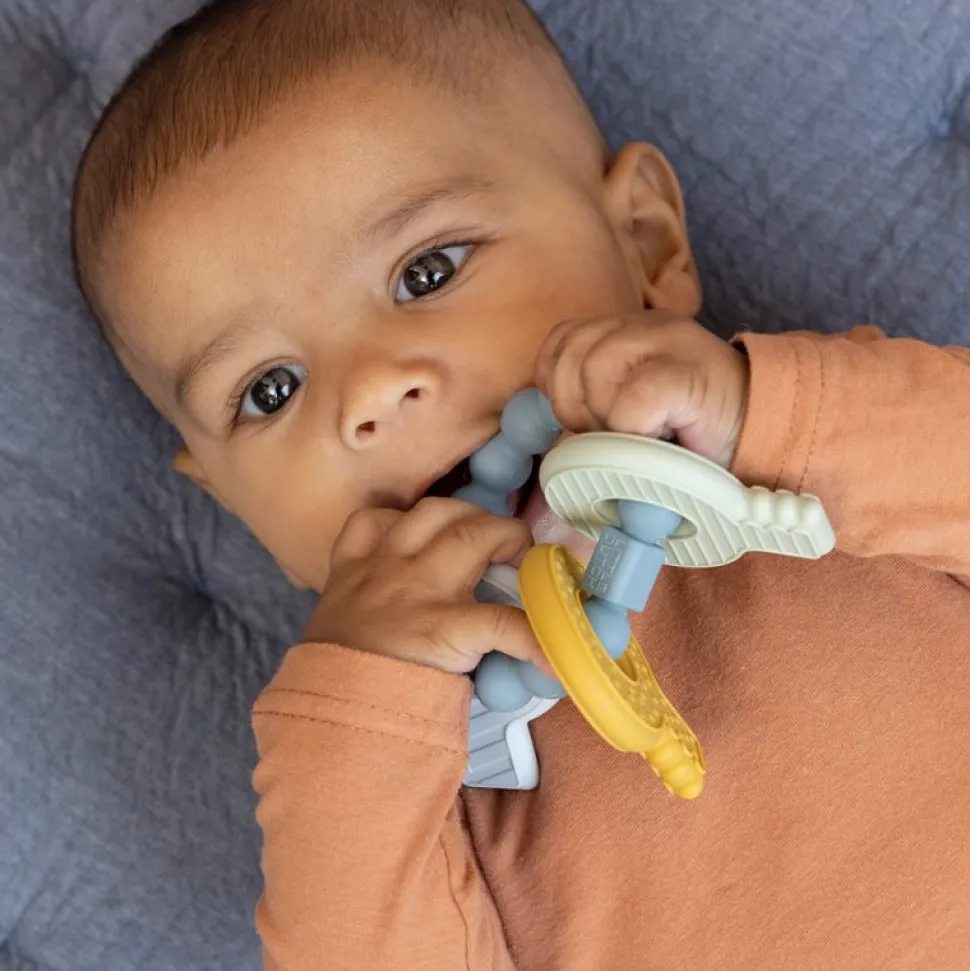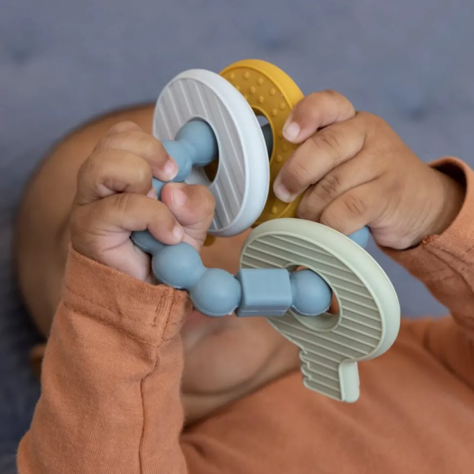 De komst van de eerste tandjes is een mijlpunt voor jouw baby, maar niet altijd even prettig! Om de pijn te verlichten heeft Little Dutch een multifunctionele bijtring ontworpen in de vorm van een sleutelbos. Het is een speeltje maar biedt ook troost en helpt de nieuwe tandjes door te komen. Het bijtspeeltje heeft verschillende texturen waardoor jouw baby genoeg te ontdekken heeft. Speciaal ontworpen dat het makkelijk vast te pakken is voor baby handjes!