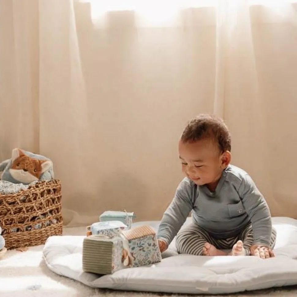 Ring, ring, ratel. Met verschillende geluiden, texturen en kleuren om te ontdekken zal deze vrolijke set zachte activiteitenblokken uit de Forest Friends collectie je kleintje uren bezighouden. Daarnaast wordt de hand-oogcoördinatie van je kindje spelenderwijs gestimuleerd. De set bestaat uit vier zintuiglijke blokken, elk met een eigen zachte kleur en een uniek nummer. Babyhandjes zullen daarnaast leuke labels, pluche panelen en een spiegeltje ontdekken.