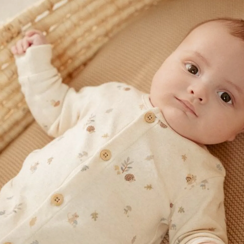 Geniet van liefdevolle momenten in Forest Friends-stijl! Dit schattige boxpakje in een zandkleurige melange heeft de betoverende Forest Nature-print met schattige kleine vosjes, omringd door een bos vol paddenstoelen en bladeren. Om makkelijk luiers te verschonen en aan- en uit te kleden, heeft het een opening met drukknoopjes bij het kruis en aan de voorkant. Gemaakt van zacht, biologisch katoen, zorgt het voor een comfortabele pasvorm voor je kleintje. Combineer met een rompertje voor een gecoördineerde look of mix en match met andere items uit de Forest Friends-collectie. Verkrijgbaar in de maten 44, 50, 56, 62, 68 en 74.