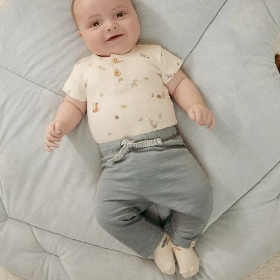 Perfect voor elk avontuur, klein of groot. Dit broekje biedt comfort en stijl voor elke dag. Gemaakt van biologisch katoen, is het perfect voor elk avontuur van je kindje; van het draaien van zij naar zij, het reiken naar speelgoed, tot de eerste pogingen om te kruipen. De elastische tailleband met trekkoord zorgt voor een nauwsluitende pasvorm, waardoor elke beweging mogelijk is. Combineer naadloos met de t-shirts uit de Forest Friends-collectie voor een gecoördineerde look van top tot teen. Verkrijgbaar in de maten 44, 50, 56, 62, 68 en 74.