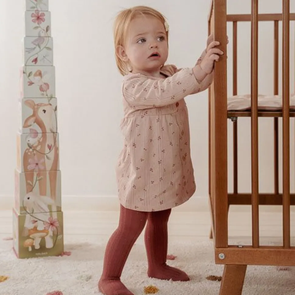 Klaar om weg te dromen in Fairy Flowers? Dit mooie jurkje zal de verbeelding van je kleintje prikkelen met een sprookjesachtige tuin vol bloemen. Gemaakt van zacht biologisch katoen, combineert het comfort met een prachtig ontwerp. De verfijnde pointelle structuur van de stof, in een prachtige lichte tint roze, is versierd met een betoverende print van kleine bloemetjes. De elastische zoom aan de lange mouwen geeft de jurk een verfijnde uitstraling. De sluiting met charmante hout-look knopen heeft één opvallende knoop in de vorm van een bloem. Combineer het met andere items uit de gecoördineerde Fairy Garden-collectie. Verkrijgbaar in maten 44, 50, 56, 62, 68 en 74.