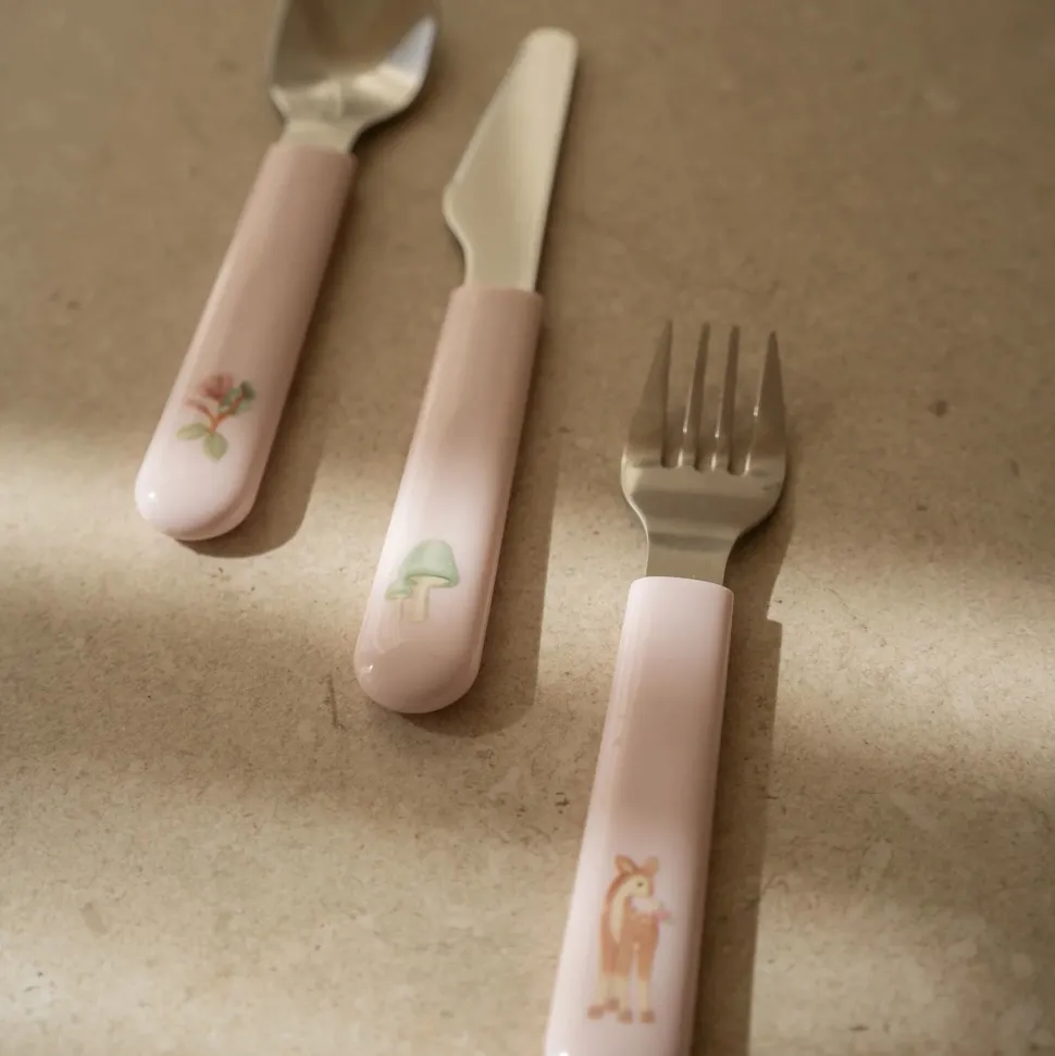 Eten zoals de groten. Jouw kleintje wil graag alles doen wat jij ook doet. Met een eigen vork, lepel én mes wordt eten ineens een groot avontuur. De Mepal Mio bestekset, met de dromerige Fairy Garden print van Little Dutch, is daar perfect voor. De set bestaat uit een vork, een lepel en een veilig mesje met een afgeronde kartelrand. Zo leert je kindje stap voor stap zelfstandig eten. De handvatten zijn gemaakt van stevig kunststof en liggen fijn in kleine handjes. Het bestek is geschikt voor kinderen vanaf 12 maanden en gemaakt van roestvrij staal, dus extra duurzaam. Na gebruik mag alles gewoon in de vaatwasser. Handig en helemaal klaar voor de volgende maaltijd.
