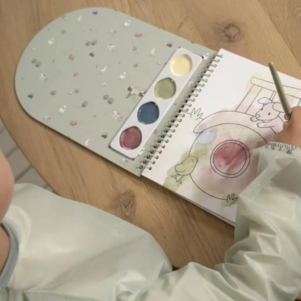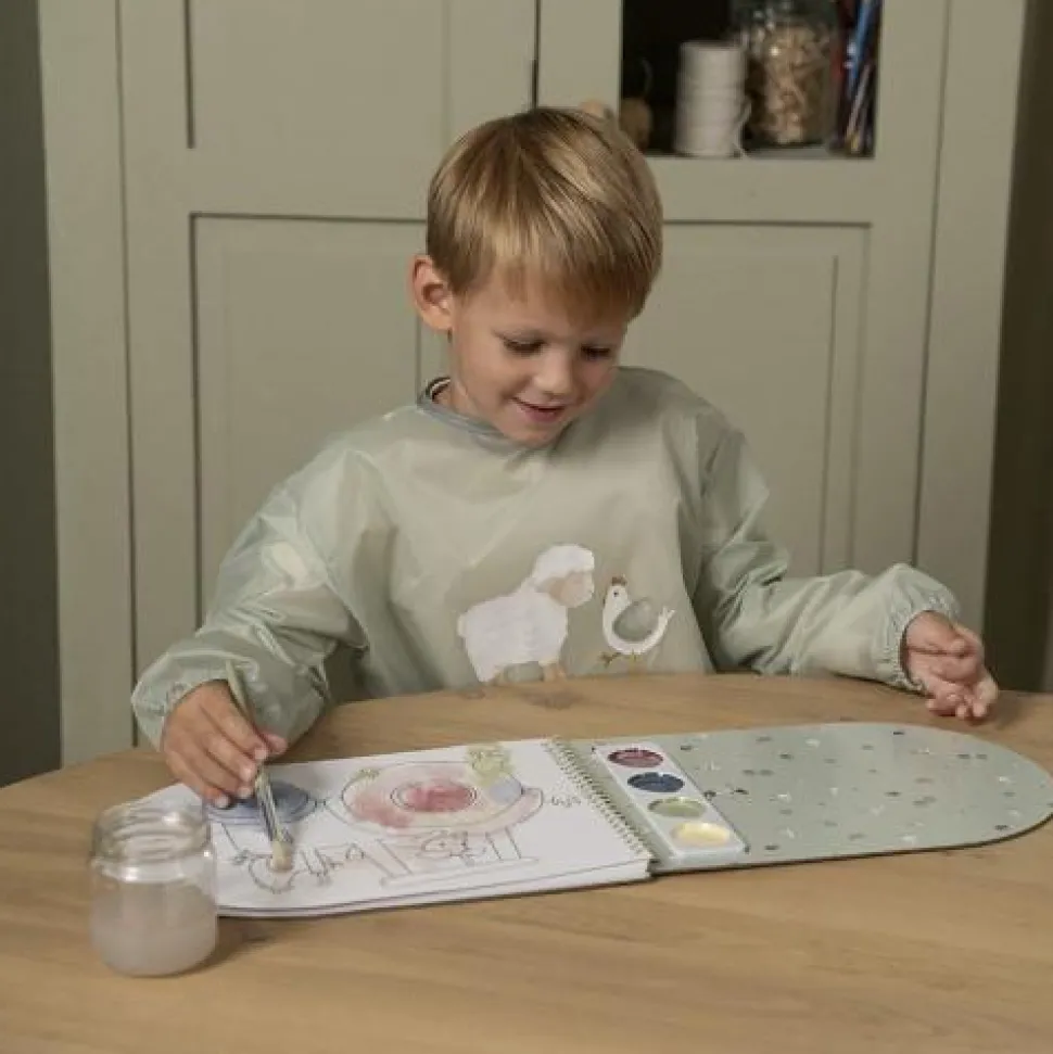 Maak je klaar om echte kunst te maken! Heb je alles wat je nodig hebt? Verf, kwasten, papier en natuurlijk dit schattige kliederschort! Het houdt je kleding schoon en droog zodat jij je kunt concentreren op het creëren van de mooiste kunstwerkjes. Dit waterafstotende schort bedekt met het boerderij dessin van Little Farm zal de creativiteit van je kleine kunstenaar niet beperken. Het is gemakkelijk om aan en uit te trekken met de klittenbandsluiting aan de achterkant. De mouwtjes hebben elastische bandjes rond de polsen zodat er geen vloeistof naar binnen druipt. Maak je geen zorgen over vlekken. Je kleintje blijft schoon en na het knutselen en verven is het schort makkelijk schoon te maken met een vochtige doek of in de wasmachine (handwas max 30 °C).