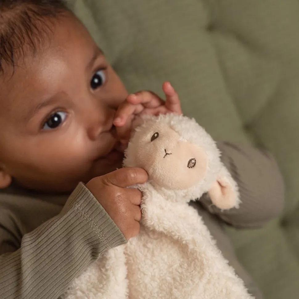 Altijd binnen handbereik. Kindjes hebben dit doekje graag in de buurt. In de box of in de kinderwagen. Deze met een schaapje is afkomstig uit onze Little Farm collectie en biedt vele leuke details om te ontdekken. Denk aan makkelijk vast te pakken leuke labeltjes die de zintuigen prikkelen. De superzachte schaap geeft dit knuffeldoekje een speelse uitstraling.
