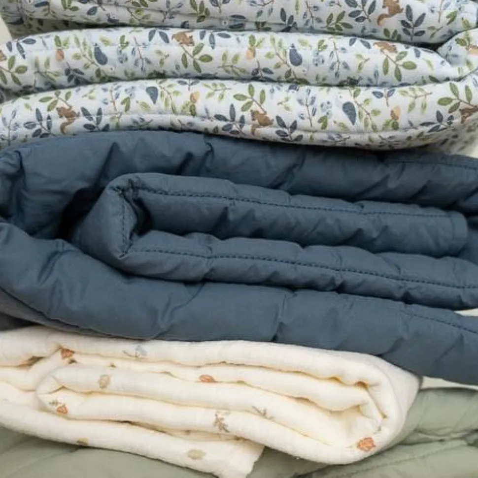 Houd je kleintje knus en warm tijdens het slapen met deze mooie ledikantdeken. Het is gemaakt van 100% biologisch katoen en met subtiele doorgestikte strepen voor een eigentijdse uitstraling. Bovendien is het licht gewatteerd voor extra zachtheid en comfort, waardoor het een ideale keuze is voor de kamer van je kleintje. Deze deken is dubbelzijdig en combineert twee prints uit de Forest Friends collectie. Je kunt kiezen voor de subtiele stijl van Forest Treasures met een gebroken witte basis versierd met kleine paddenstoelen en blaadjes, of voor het lichtblauwe canvas van Forest Adventure.