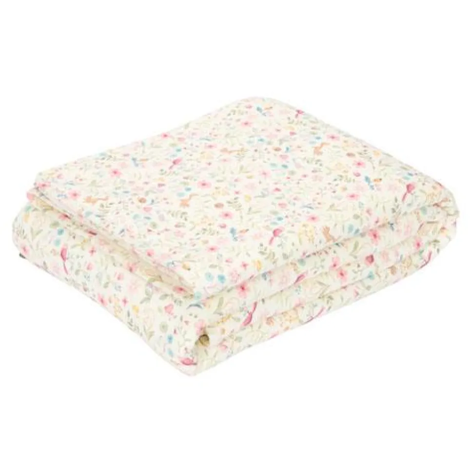 Houd je kleintje knus en warm tijdens het slapen met deze mooie ledikantdeken. Met aan de ene kant een zachte interlock stof en aan de andere kant een heerlijke fleece stof is de deken ook te gebruiken als omslagdoek, sprei of speelkleed. Het Fairy Wonders dessin zal de zoetste dromen inspireren van een tuin vol fleurige bloemen en spelende diertjes. Gemaakt van 100% biologisch katoen met een TOG-waarde van 2.2 waardoor het zowel ademend als isolerend is. Voor extra gemak kun je de deken gewoon wassen in de wasmachine op 30 graden.