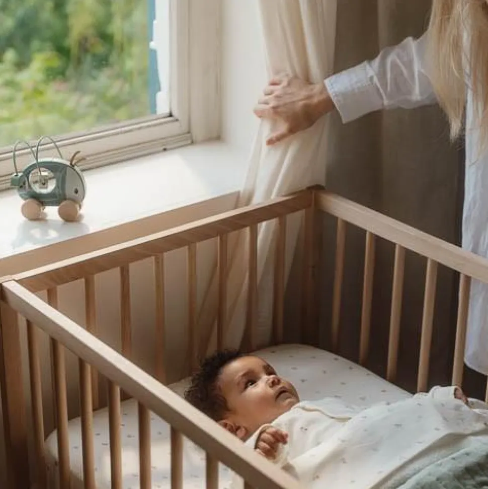 Een prachtig opgemaakt bedje zorgt gelijk voor een gezellige sfeer in de kinderkamer. Je kleintje zal heerlijk slapen onder dit zachte ledikantlaken, gemaakt van 100% biologisch katoen. De zoom van het laken is versierd met paddenstoeltjes, blaadjes, eikeltjes en dennenappels van het Forest Treasures dessin. Het ledikantlaken is samen met een Little Dutch ledikantdeken een perfecte combinatie.