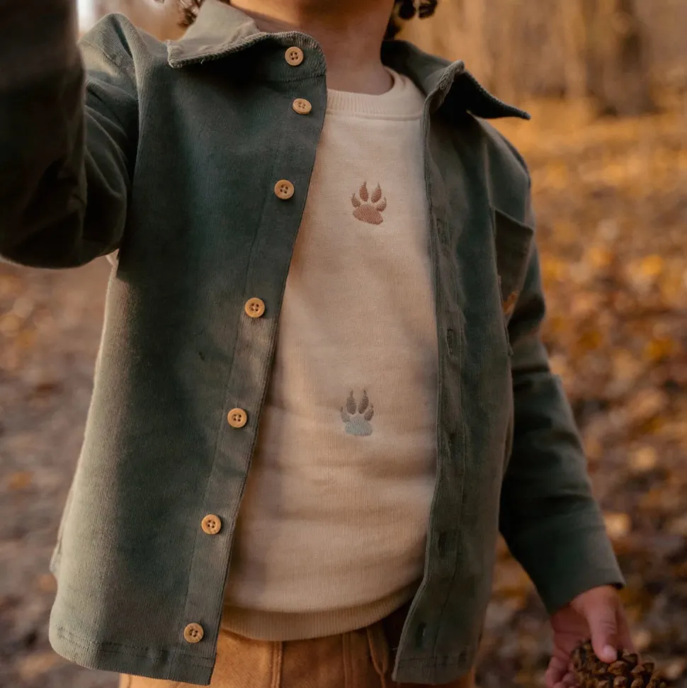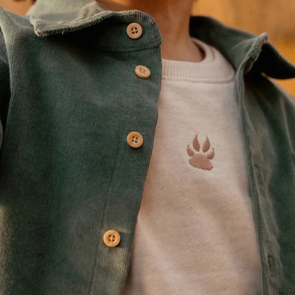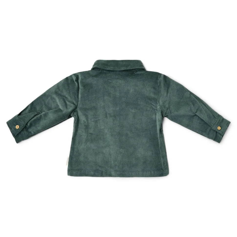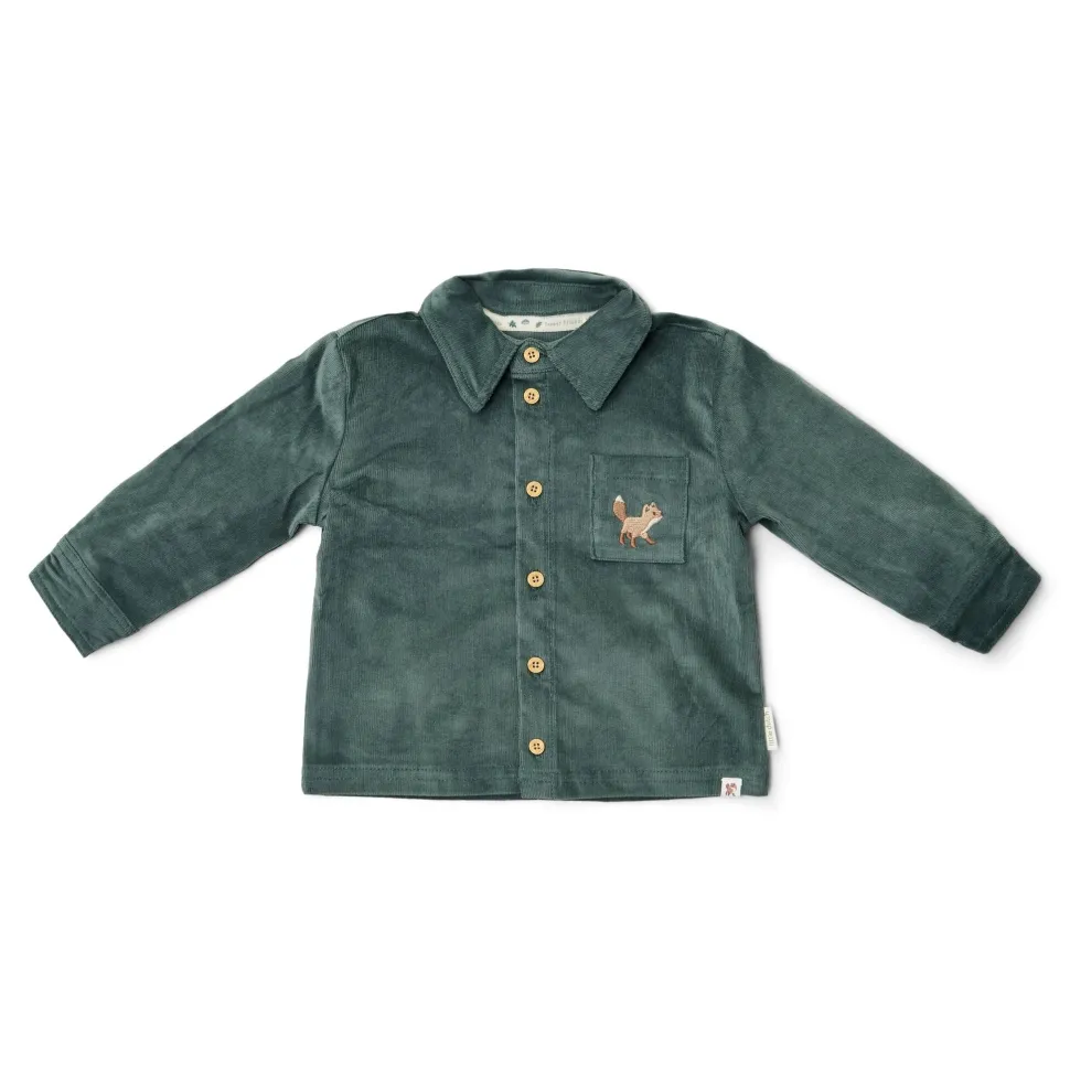 Stuur je kleine ontdekkingsreiziger stijlvol op pad! Dit zachte, warme corduroy overhemd in de kleur Night Green is de perfecte keuze voor elke kleine gentleman met een avontuurlijke kant. De hout-look knoopjes geven het overhemd een stoere touch, terwijl het borstzakje met een schattig “Forest Friend” borduursel subtiel laat zien dat hij ook een zachte kant heeft. Mix en match met de andere items uit de collectie. Verkrijgbaar in de maten 74, 80, 86, 92, 98 en 104.