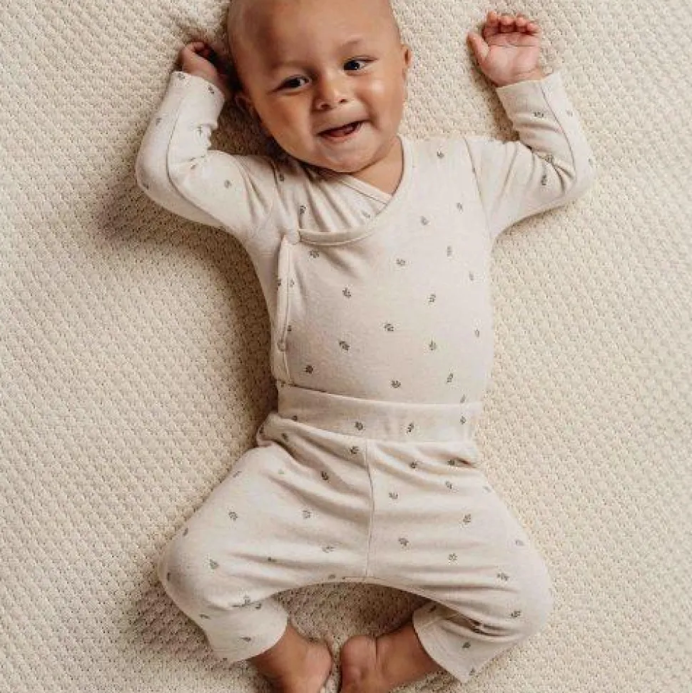 Gehuld in comfort! Dit rompertje met een overslag sluiting en drukknoopjes is de perfecte basis voor de eerste avonturen van jouw pasgeborene. De charmante zandkleur met een fijn printje van kleine blaadjes zorgt voor een natuurlijke uitstraling. Gemaakt van zacht biologisch katoen en met praktische drukknoopjes bij het kruis, biedt dit rompertje een nauwsluitende en comfortabele pasvorm, ideaal voor dagelijks gebruik. Het overslagontwerp maakt het aan- en uitkleden heel gemakkelijk, wat zowel voor jou als je baby handig is. Het rompertje combineert prachtig met elk item uit de Little Farm-collectie. Verkrijgbaar in maten 44, 50, 56, 62, 68 en 74.