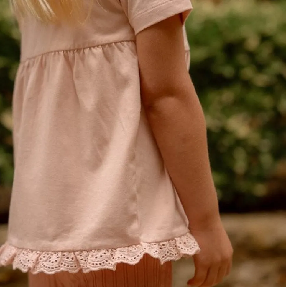 Alle feeën verzamelen! Het is tijd om te dansen en te spelen in dit betoverende t-shirt. Gemaakt van zacht, biologisch katoen in een prachtige lichtroze tint. De twee lieve geborduurde bloemetjes op de borst geven het een vleugje speelsheid en charme. Maar de echte magie zit hem in de kanten ruches langs de onderkant van het shirt. Bij elke draai en zwier voelt jouw kleintje zich als de ster van een magisch sprookje. Verkrijgbaar in maten 74, 80, 86, 92, 98 en 104. Maten 74, 80 en 86 zijn voorzien van drukknoopsluitingen op de schouder voor gemakkelijk aan- en uitkleden. Makkelijk te mixen en matchen met de andere items uit de Fairy Garden-collectie.