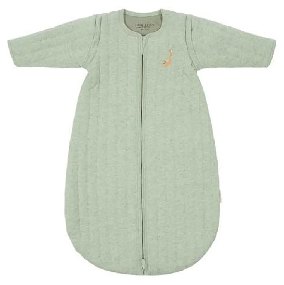 Met deze mooie warme slaapzak is je kleintje klaar voor fijne en comfortabele slaapjes. Het jersey biologisch katoen voelt fijn en zacht en met de afneembare lange mouwen is het perfect om je kleintje knus en warm te houden tijdens de wintermaanden. De groene grijze Sage basis straalt een gevoel van natuurlijke harmonie uit en is versier met een kleine borduursel van een schattige eekhoorn. De rits van de slaapzak sluit naar beneden en is zowel aan de binnen- als buitenkant bedekt zodat je kleintje veilig en beschermd blijft. De slaapzak is Oeko-Tex gecertificeerd en verkrijgbaar in 70 cm, 90 cm en 110 cm.