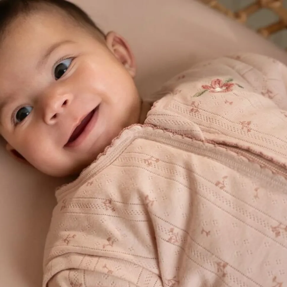 In deze prachtige winterslaapzak met afritsbare mouwtjes in de zachte kleur Pure Blossom met subtiele bloemenprint en delicaat borduursel zal je kleintje slapen als een roosje. Gemaakt van luxe jersey jacquardstof en afgewerkt met een charmant picotrandje, voelt deze slaapzak net zo fijn aan als hij eruitziet. Perfect voor dromen vol bloemenvelden. De slaapzak is verkrijgbaar in 70 cm en 90 cm. De slaapzak sluit naar beneden zodat je kindje hem niet gemakkelijk zelf kan openritsen. Er zit een flap over de rits om de gevoelige babyhuid te beschermen.