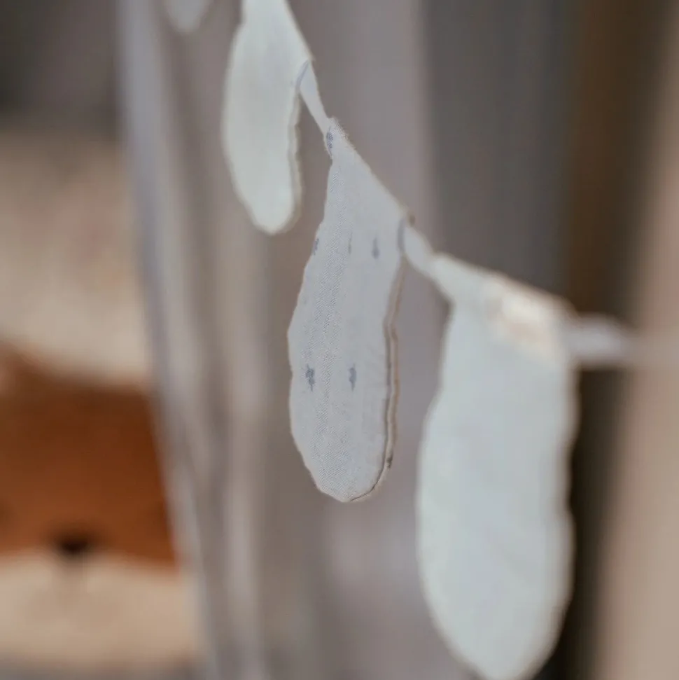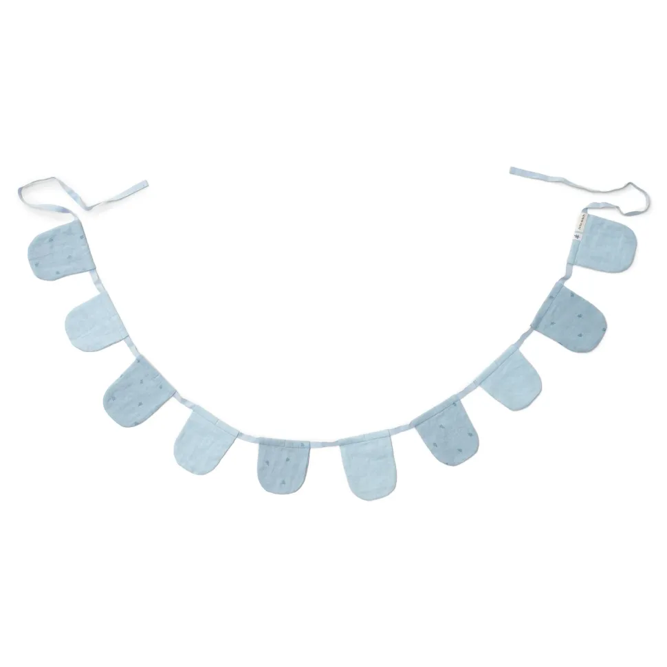 Fleur de baby- of kinderkamer op met deze mooie slinger van ronde vlaggetjes. Wie zegt dat slingers alleen voor feestjes zijn! Ze fleuren een kamer meteen op. Aan de muur, rond de klamboe, op een boekenplank of om een speeltent te versieren. Ga creatief aan de slag met deze charmante slinger van mousseline in de zachte kleur ‘Pure Denim Blue’.