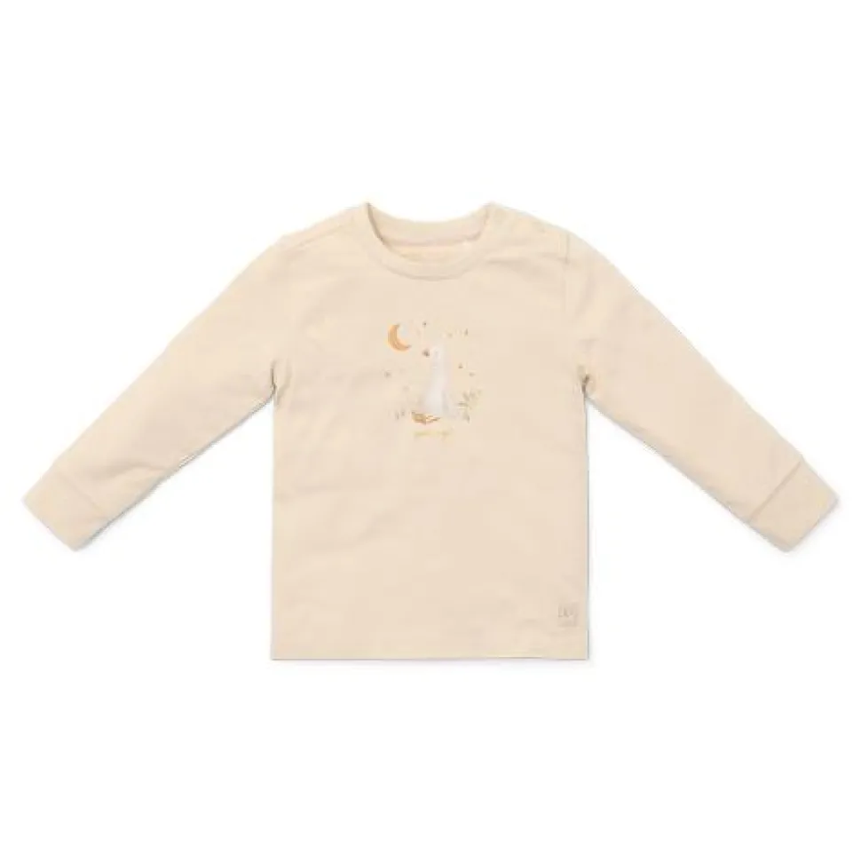 Slaap maar zacht klein gansje: in deze pyjama in neutrale tinten en een schattige gansje ben je zo in dromenland. Deze tweedelige set heeft een printje van witte en beige strepen op de broek, en een charmante print van een slaperige baby gansje op het gebroken witte shirt. Ontworpen om te combineren met het bijpassende beddengoed, is deze pyjama gemaakt van biologisch katoen voor heerlijke zachtheid en fijn comfort. Verpakt in een mooie geschenkdoos en verkrijgbaar in maten 62/68, 74/80, 86/92 en 98/104.