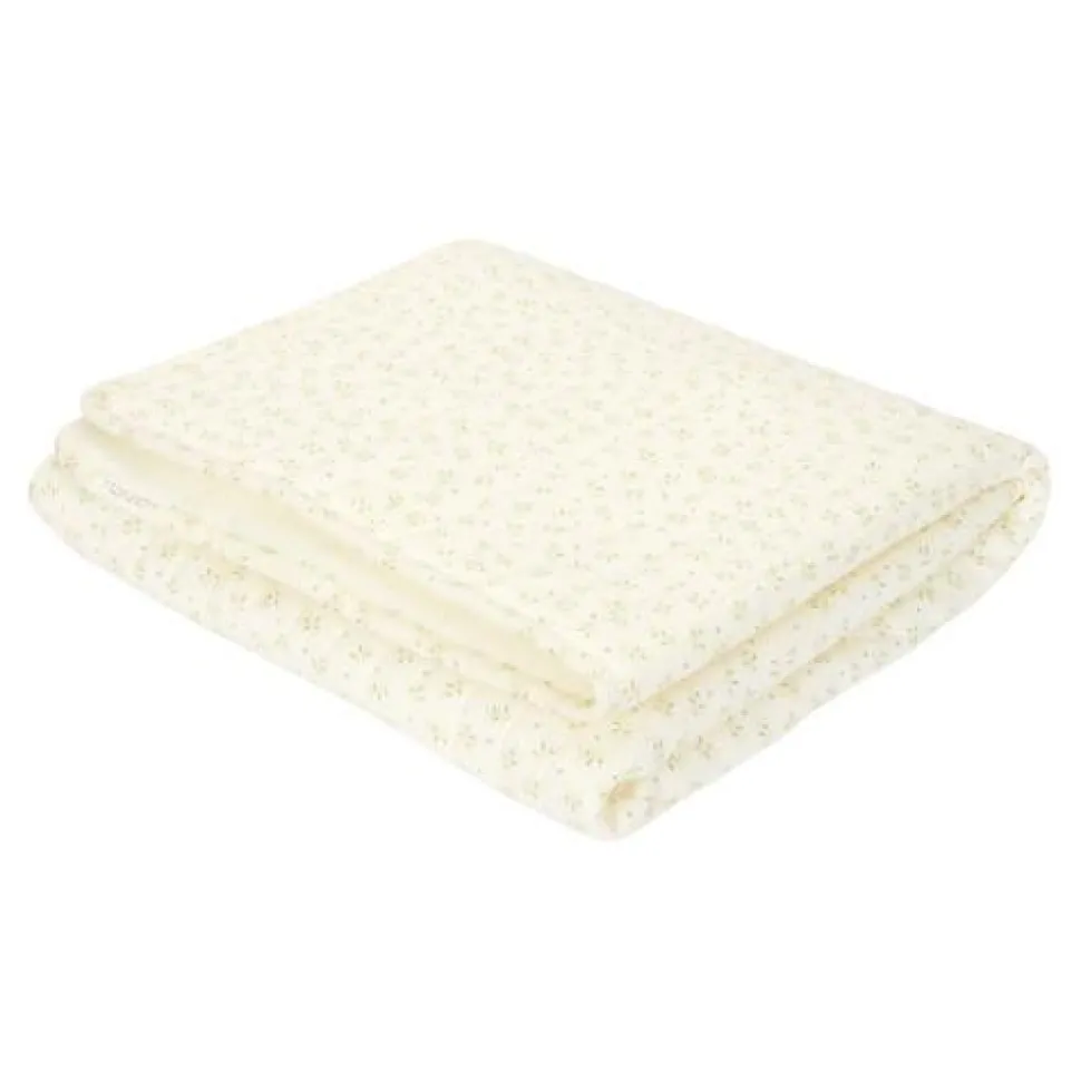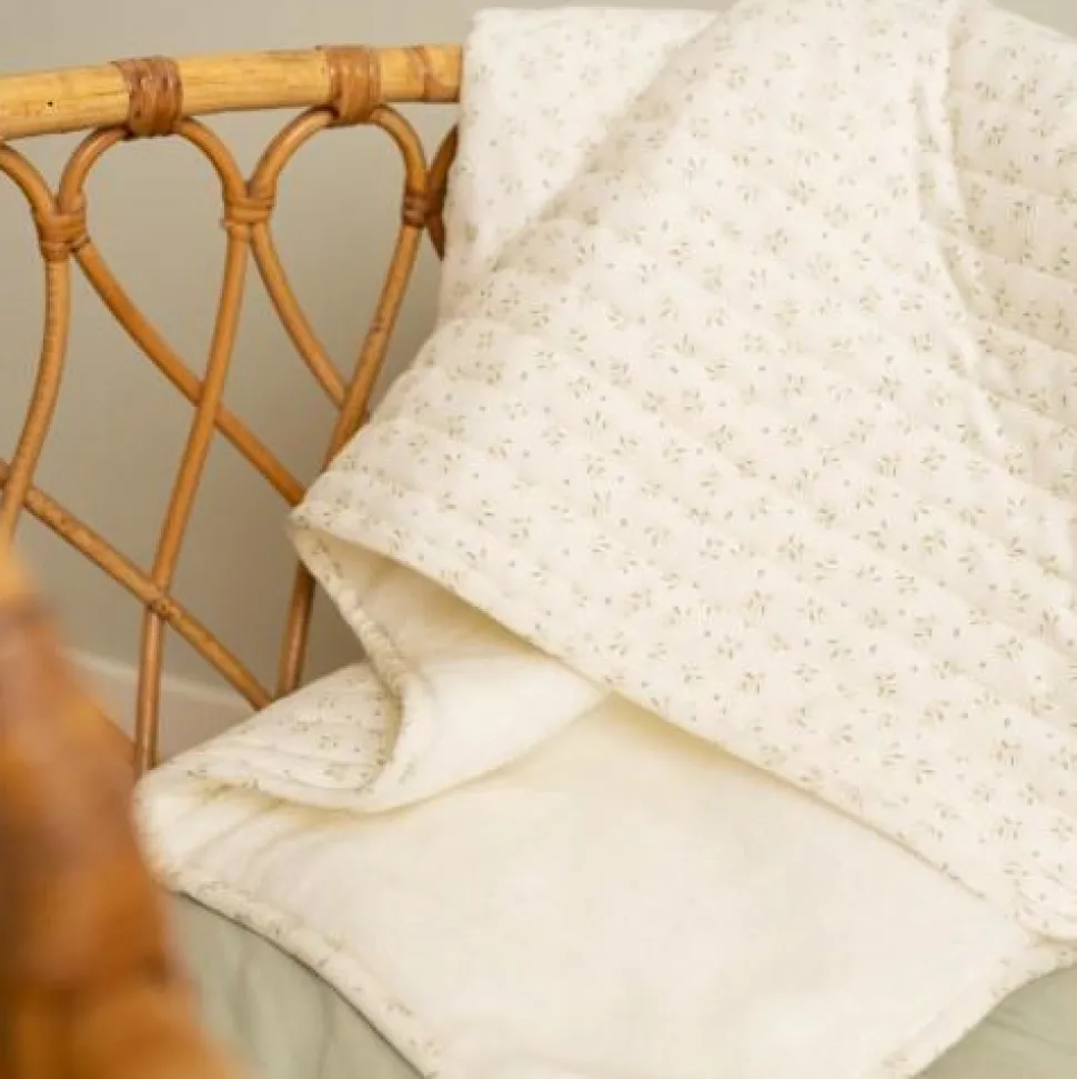 Houd je baby comfortabek en warm tijdens het slapen met deze mooie wiegdeken. De voorkant is gemaakt van 100% biologisch katoen met doorgestikte strepen voor een eigentijdse. Aan de achterkant is het dekentje gevoerd met zachte en warme fleece, zodat het ook gebruikt kan worden als sprei of speelkleed. Het liefelijke Blueberry Leaves dessin omhelst je baby in de serene schoonheid van de natuur voor de zachtste dromen.