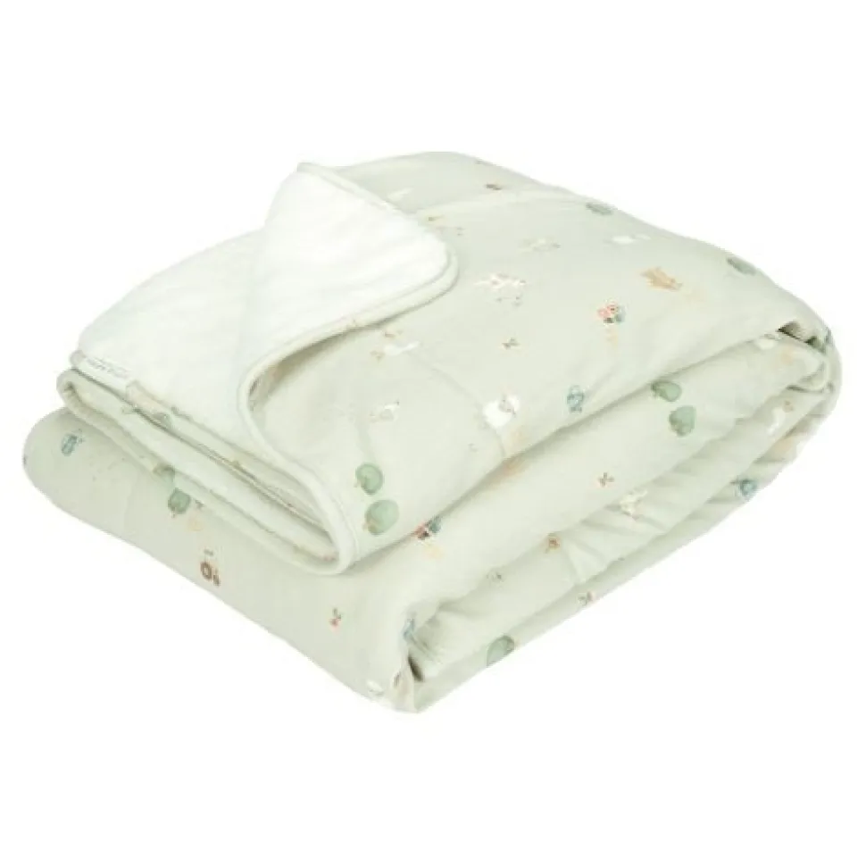 Een prachtig wiegdeken dat je kindje heerlijk warm houdt. Met aan de ene kant een zachte jersey stof en aan de andere kant een heerlijke teddy stof is het deken ook te gebruiken als omslagdoek, sprei of speelkleed. Deze uit de Little Farm collectie is verrijkt met de prachtige boerderijprint. De buitenstof is gemaakt van 100% katoen en de voering van 100% polyester. Het wiegdeken kan in de wasmachine gewassen worden. Ook verkrijgbaar als ledikantdeken.