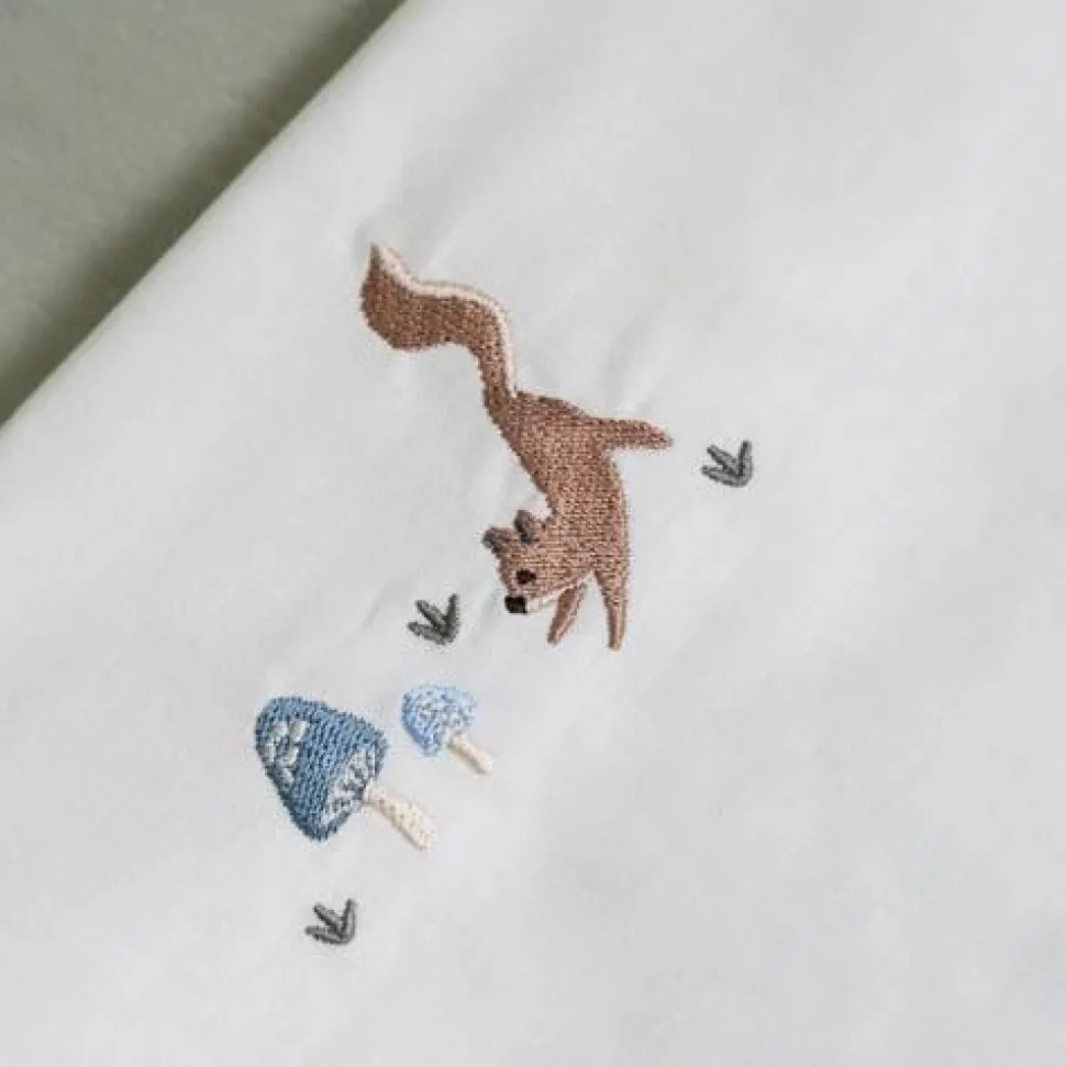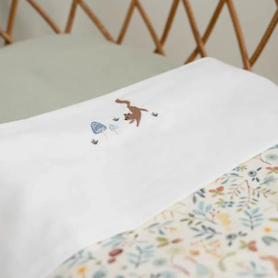 Breng een vleugje sfeer in de babykamer met dit wieglaken met geborduurde paddenstoelen uit de Forest Friends-collectie. Gemaakt van 100% biologisch katoen, zorgt dit laken ervoor dat je baby zich comfortabel voelt en heerlijk weg zal dromen. De decoratieve zoom is voorzien van schattige paddenstoelborduursels. Vouw het laken eenvoudig over een Little Dutch deken om een extra laagje warmte en stijl aan het wiegje toe te voegen.