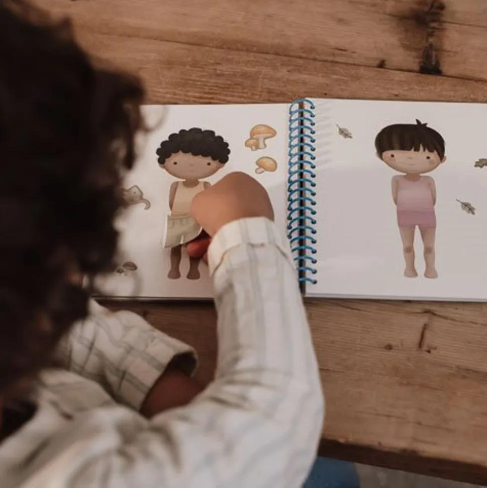 Wat ga je vandaag aantrekken? Met dit verkleedboek wordt je kleintje een echte modestylist. Laat fantasie de vrije loop als je kleintje Jim en zijn vrienden aankleedt voor hun avonturen in het bos. Het boek heeft 24 pagina’s en 12 stickervellen met de mooiste kleren en accessoires. Of je kleintje nu wil dat Jim een stoere boswachter wordt of zijn vriend een avontuurlijke ontdekkingsreiziger, hij of zij heeft het voor het zeggen. Het boek is gemaakt van stevig karton, waardoor het een ideale activiteit is voor thuis en onderweg!