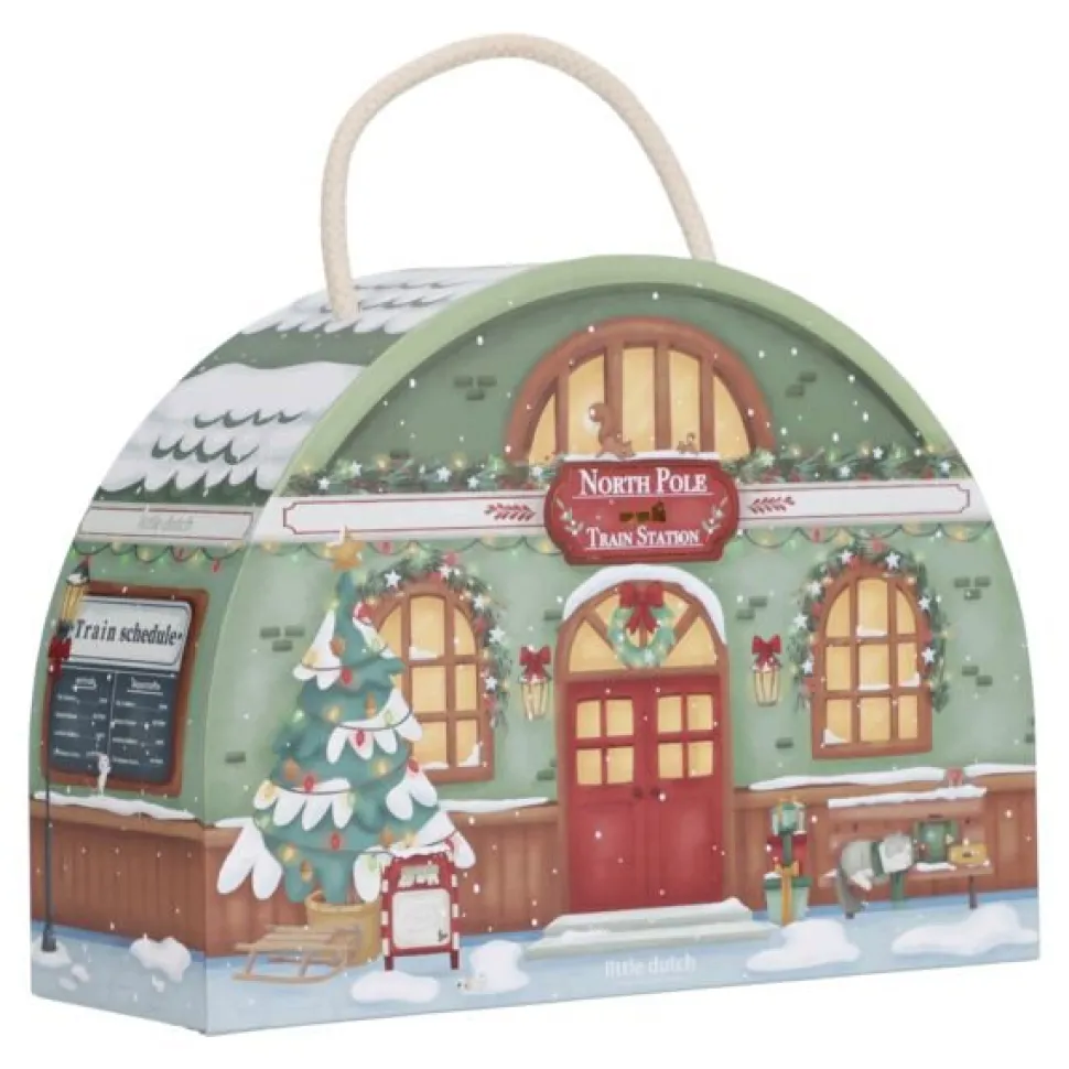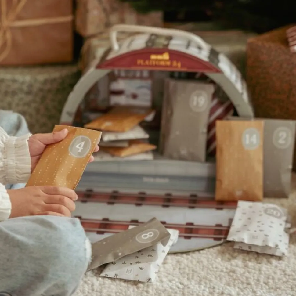 Deze adventskalender bevat een houten speelgoedtrein en 24 verrassingen om een prachtig treinstation te bouwen. Een feestelijke uitbreiding voor elke houten treinbaan!