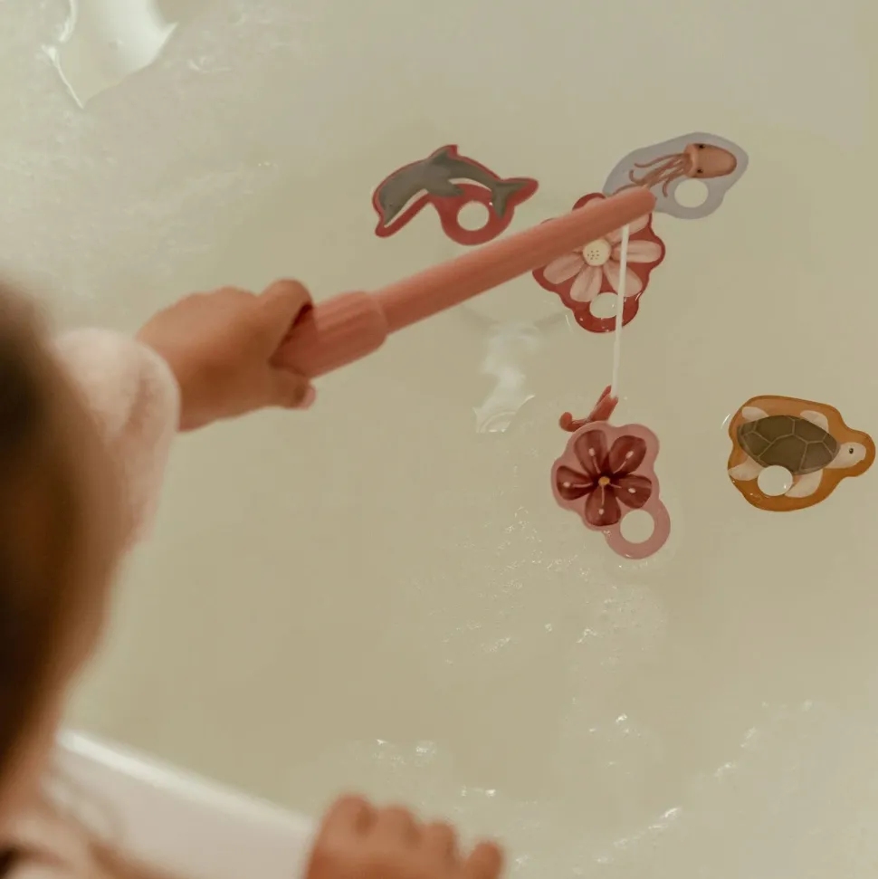 Vangen maar! Met dit roze bad visspel verandert iedere badsessie in een vrolijk avontuur. De set bevat een hengel, een schepnet en acht kleurrijke figuurtjes, zoals bloemen en zeedieren. Vissen, scheppen en ontdekken: kleine handjes hebben eindeloos plezier en oefenen tegelijk hun motoriek. De handvatten van de hengel en het schepnet zijn los te schroeven, zodat je alles makkelijk kunt opbergen. Samen genieten van de leukste watermomenten was nog nooit zo simpel!