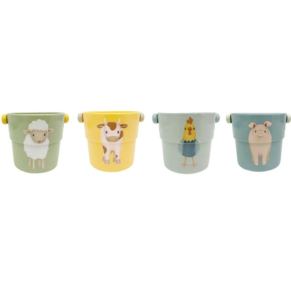 Stapelen, vullen, gieten en SPLASH! Je kleintje zal extra genieten tijdens het badderen met deze set van 4 badbekers. Ze zijn er in 4 verschillende kleuren en zijn versierd met de leukste boerderijdieren uit de Little Farm collectie. Zo is er een badbeker met een schaap, varken, koe en een haan. De maat is precies goed voor kleine handjes en spelen met de kleine emmertjes helpt bij de ontwikkeling van motorische vaardigheden. Stapel ze op elkaar om een grote toren te bouwen of om ze omver te werpen. Of vul ze met water en zie er verschillende vormen uitstromen.