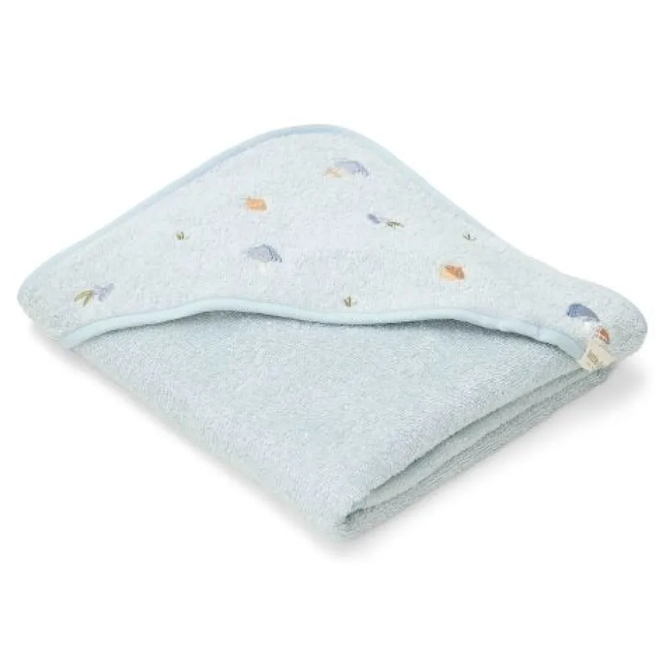 Wikkel je kleintje in warmte en zachtheid met deze badcape. Gemaakt van 100% biologisch katoenen badstof voor een heerlijk zacht en knus gevoel. Ontworpen voor zowel praktisch gebruik als charme, zorgt de zachte capuchon voor geborgenheid en comfort na het badderen. De handdoek heeft een mooie lichtblauw Blue kleur en de capuchon is versierd met schattige geborduurde paddenstoelen uit de Forest Friends-collectie.