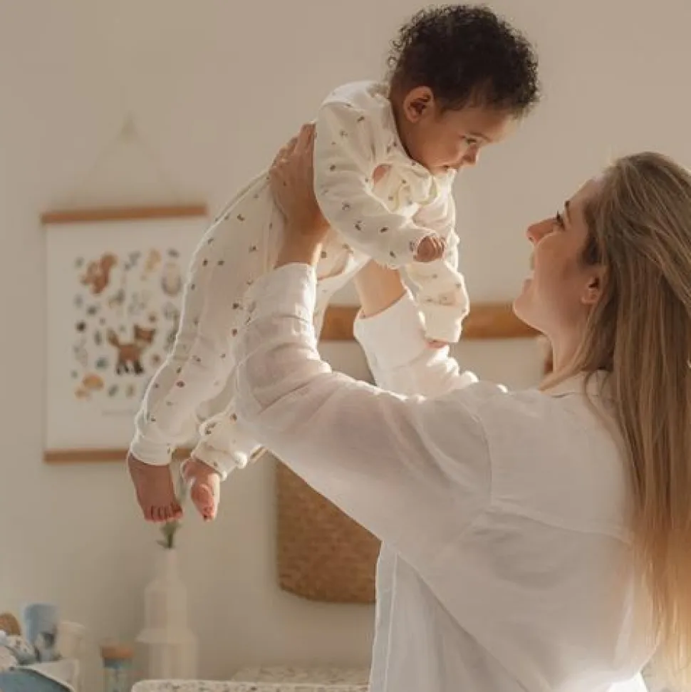 Woodland Wonders: Ga op zoek naar de schatten van het bos tijdens het slapen. Deze onesie heeft een charmante wafelstructuur en een prachtige print van kleine bosvondsten, waardoor de magie van de natuur naar de dromen van je kleintje wordt gebracht. De pyjama sluit met hout-look knopen aan de voorkant en drukknoopjes bij het kruis zodat het aan- en uitkleden en het verschonen van luiers heel gemakkelijk is. Gemaakt van biologisch katoen voelt deze pyjama zacht aan op de huid van je baby en staat het perfect bij het bijpassende beddengoed. Verpakt in een mooie doos, dus extra leuk om cadeau te geven. Verkrijgbaar in maten 50/56, 62/68 en 74/80.