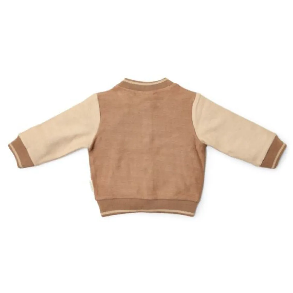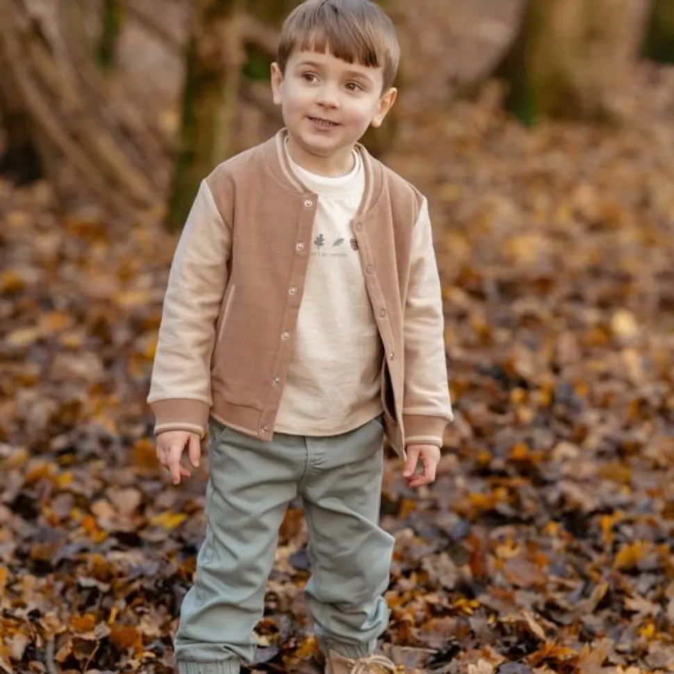 Houd je kleine avonturier lekker warm met dit coole vest! De mooie bruine kleur met taupe mouwen en de fijne textuur van de stof maken dit vestje zo leuk. Met de handige drukknoopsluiting in het midden en de steekzakken is dit vest zowel praktisch als comfortabel. De subtiele strepen in de mouwboorden geven het een speelse twist. En omdat het gemaakt is van Oekotex-gecertificeerd biologisch katoen, is het niet alleen comfortabel, maar voelt het ook goed! Verkrijgbaar in de maten 74, 80, 86, 92, 98 en 104.
