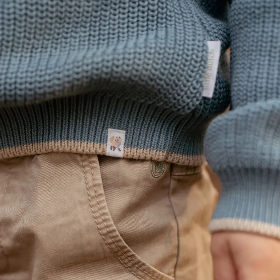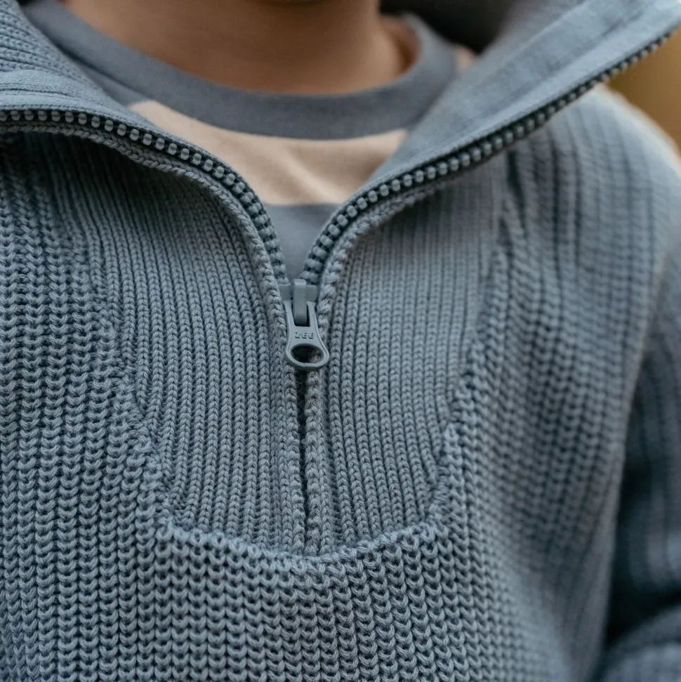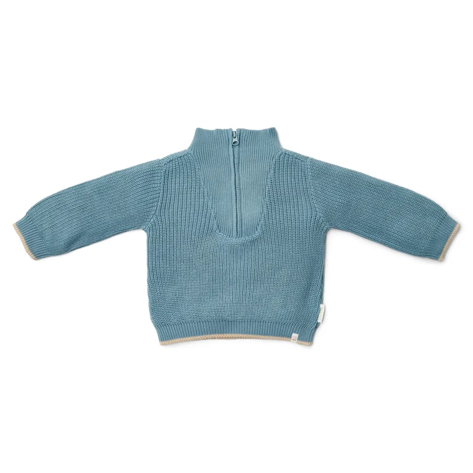 Maak je kleintje klaar voor avontuur met deze heerlijke, warme gebreide trui in de kleur Stone Blue. Deze trui is niet alleen stijlvol, maar ook praktisch. Dankzij de kraag met rits blijft je peuter altijd in stijl, zelfs als het buiten waait, en het aan- en uitkleden wordt een fluitje van een cent! De contraststrepen aan de onderkant en bij de mouwen geven de trui een speelse uitstraling, perfect voor kleine ontdekkingsreizigers die graag hun grenzen verleggen. Verkrijgbaar in de maten 74, 80, 86, 92, 98 en 104.