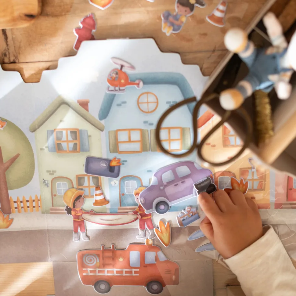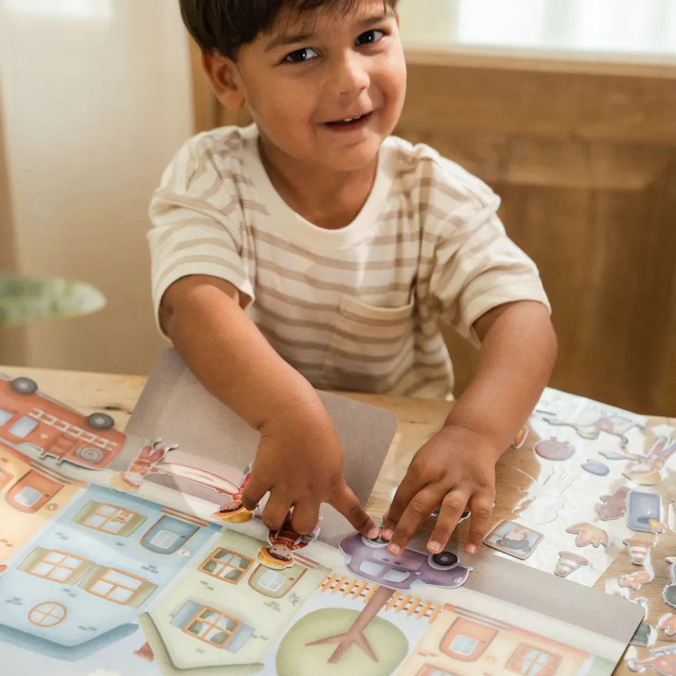 Ga op avontuur met Jim en zijn huis! Met deze vrolijke, herbruikbare stickers maak je steeds weer je eigen trafficverhaal. Plak, speel en verzin samen de mooiste avonturen. Ideaal voor kleine handjes en perfect om creatief bezig te zijn, thuis of onderweg. De zachte kleuren en lieve figuurtjes zorgen voor eindeloos speelplezier.