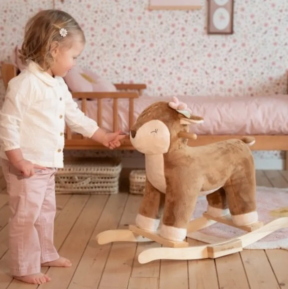 Stap op dit lieve hobbeldier in de vorm van een hert en schommel erop los! Het stevige houten frame zorgt voor veilige speelpret, terwijl de zachte vacht het extra knuffelbaar maakt. Perfect voor de kinderkamer!
