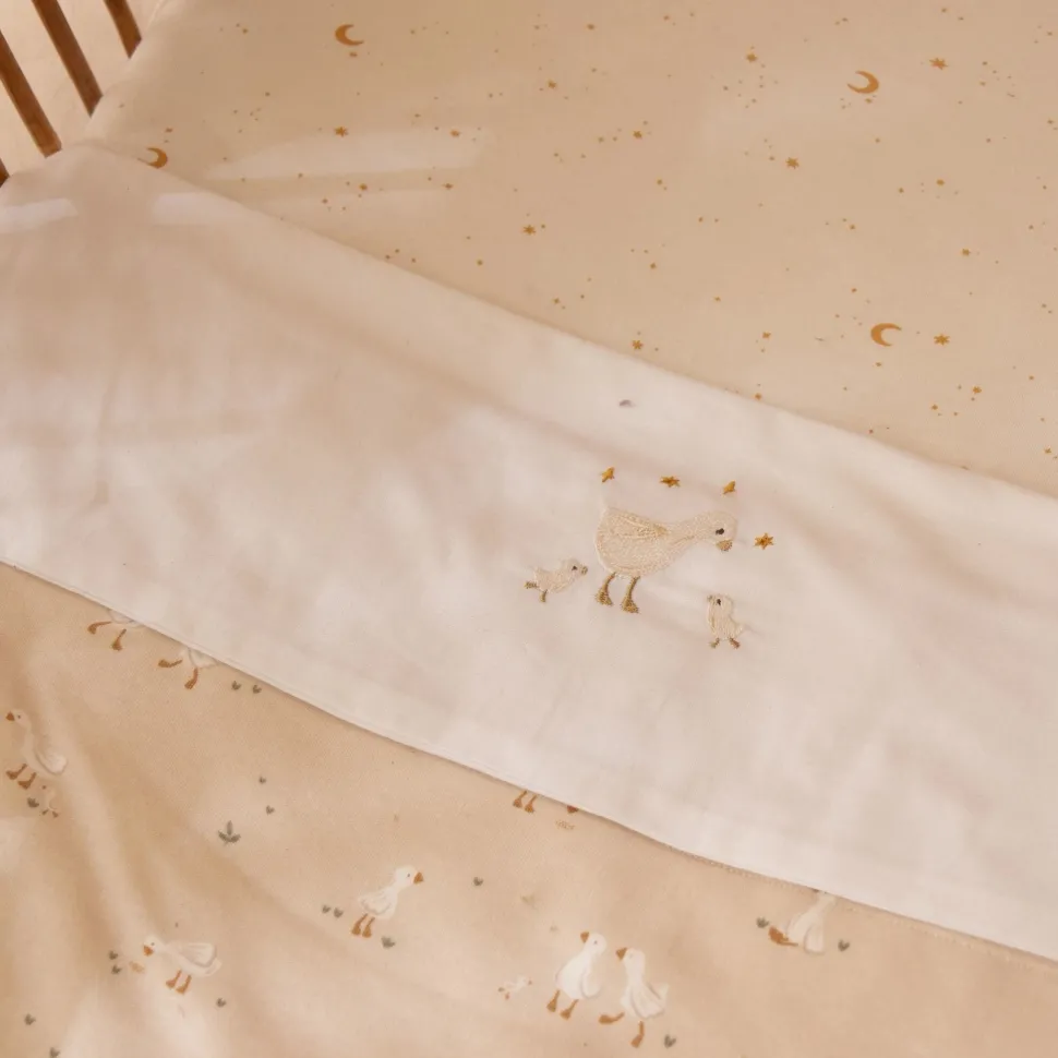 Bedek het matras van je kleintje met dit hoeslaken voor een goede nachtrust, zodat ook de kleinste sterren lekker kunnen slapen. Het zachte biologische katoen, behandeld met een perzikwassing, zorgt voor rustgevend comfort waar zelfs de wildste dromen van tot rust komen. Het elastische katoen sluit perfect om het matras en blijft mooi, zelfs na meerdere wasbeurten. De crèmekleur met de schattige Moon & Stars print brengt een dromerige sfeer in de kamer van je kindje en past prachtig bij het beddengoed van Little Dutch.