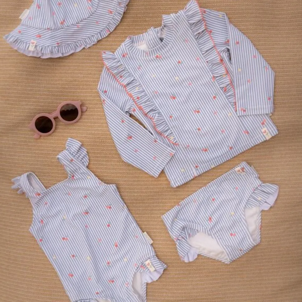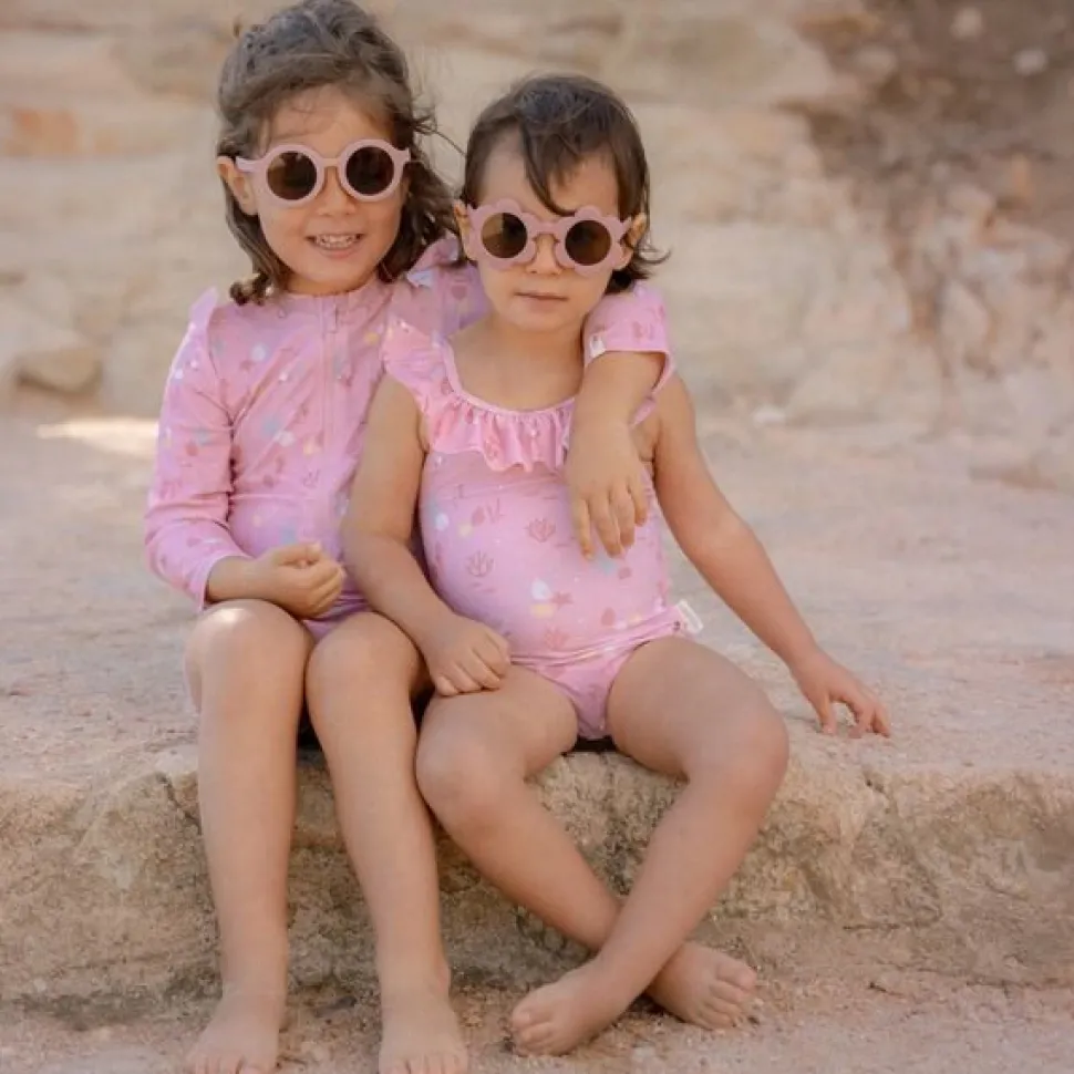 Deze lichtroze zonnebril is subtiel, stijlvol en heerlijk zomers. Het ronde montuur past perfect bij elke outfit en maakt van je kleintje een echte trendsetter. De bril biedt UV400-bescherming en is ideaal voor lange dagen in de zon. Combineer met andere zachte tinten uit de zomercollectie voor een harmonieuze look.