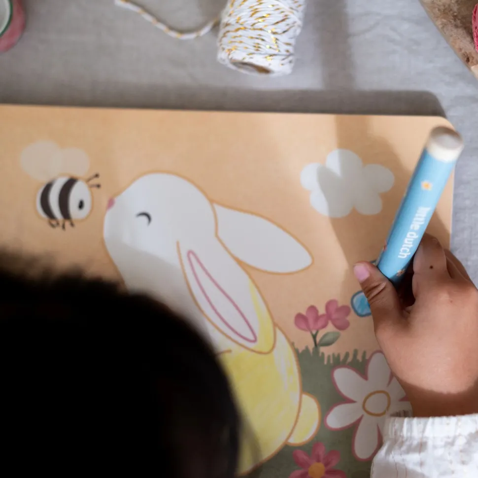 Laat je kindje verwonderen met dit magische kleurboek. Met zachte illustraties en vrolijke kleuren nodigt het uit tot creatief plezier. Inclusief drie waskrijtjes, twintig voorbedrukte en tien witte pagina’s voor eindeloos kleurplezier. Gemaakt van stevig papier, perfect voor kleine handjes.