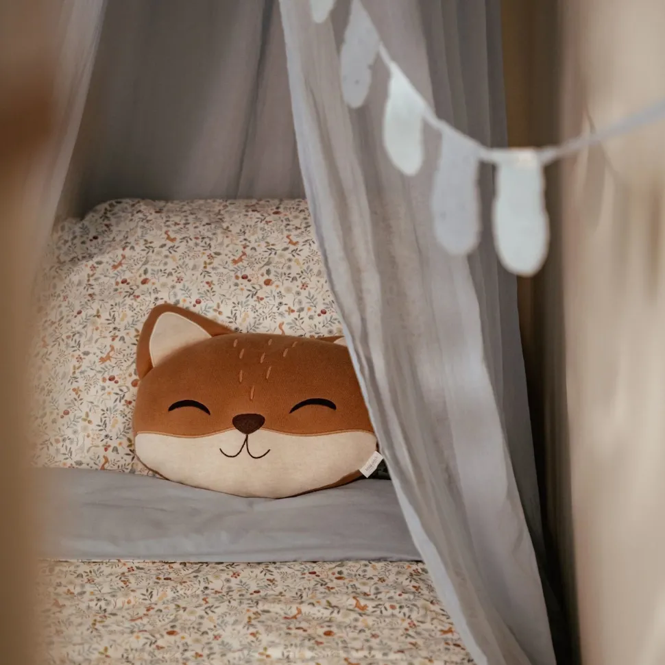 Breng een vleugje bos in de kinderkamer met dit schattige gebreide kussen van de lieve vos uit de Forest Friends collectie. Dit zachte en knusse kussen is niet alleen een gezellig accessoire, maar ook een stijlvol item om de kamer compleet te maken. De geborduurde details geven het kussen extra charme, en het is ook wasbaar – perfect voor kleine avonturiers! Gemaakt van biologisch katoen, dus net zo vriendelijk voor de planeet als voor je kleintje.