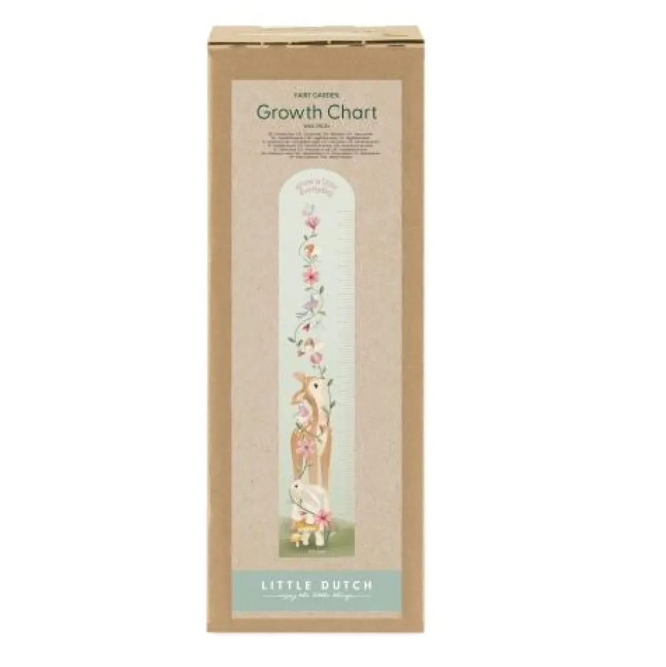 Hou bij hoe snel de kleine groeit met de groeimeter muursticker met Fairy Garden thema! De groeimeter bevat elementen uit de kleurrijke bloemenweide zoals het lieve hertje, konijntjes, bloemen, paddenstoelen en natuurlijk bloemenfeetjes. De muursticker is gemakkelijk te plakken en te verwijderen, dankzij het hoogwaardige, zelfklevende materiaal. Het betreft één sticker, met een matte afwerking en transparante plakrand die een luxueuze look geeft. Je kunt deze plaatsen op muren, en andere gladde, harde oppervlakken. Zorg voor een schoon en vlak oppervlak voor het beste resultaat. Geniet van de landelijke charme, elke dag opnieuw, met deze vrolijke en speelse Little Dutch groeimeter.