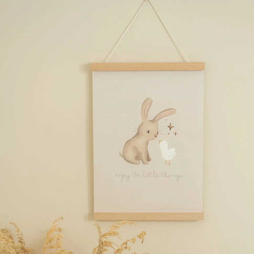 Breng sfeer in de baby- of kinderkamer met een prachtige Little Dutch A3-poster. Deze dubbelzijdige poster heeft aan de ene kant een schattige illustratie van Little Goose en aan de andere kant een lieve illustratie van Baby Bunny. Zo kun je eenvoudig afwisselen en steeds een nieuwe look creëren. De zachte kleuren en dromerige ontwerpen passen perfect bij iedere interieurstijl. Combineer de poster met onze houten posterhanger voor een stijlvolle en speelse afwerking aan de muur.