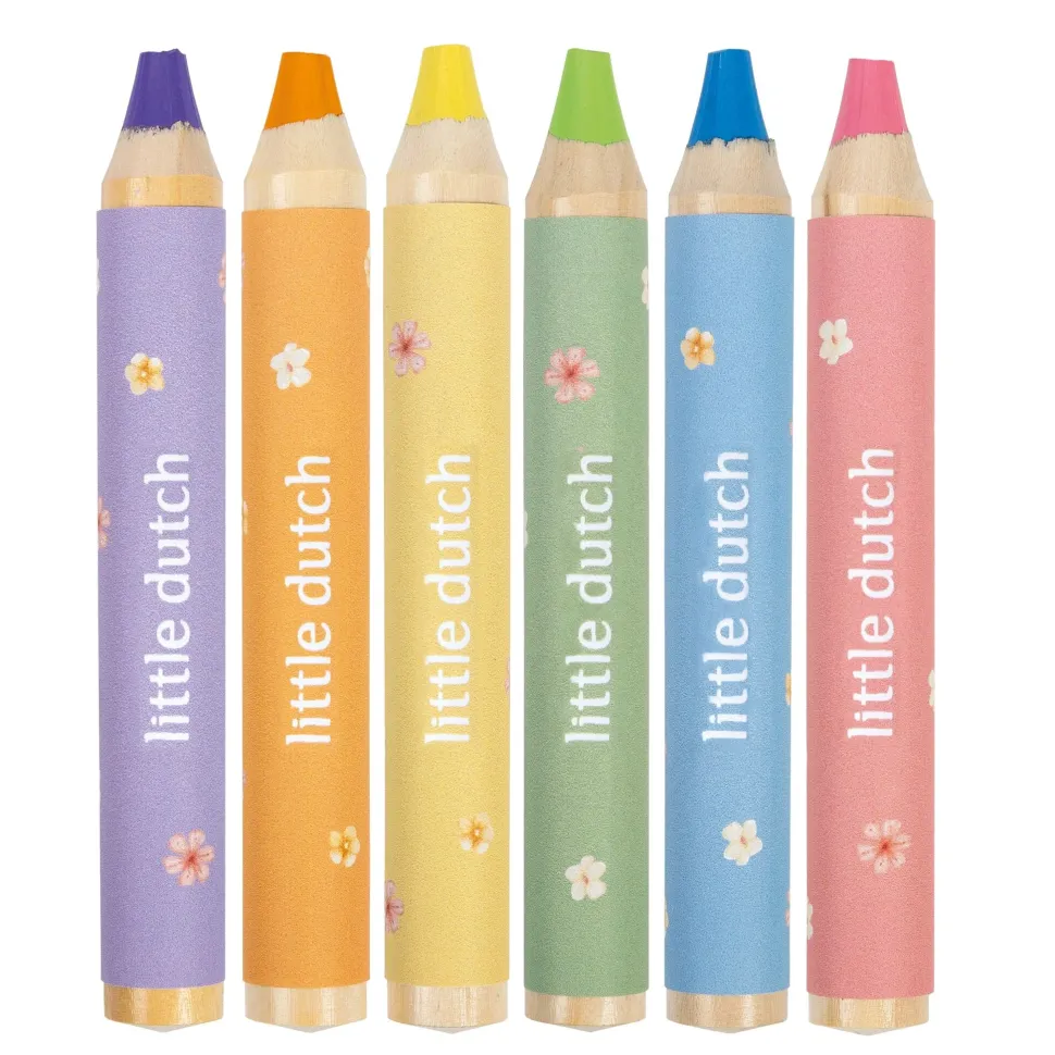 Laat je kindje de mooiste kunstwerkjes maken met deze set van zes korte, dikke kleurpotloden in zachte Little Dutch tinten. Perfect voor kleine handjes om te ontdekken, tekenen en kleuren. De potloden stimuleren creativiteit en fijne motoriek en passen prachtig bij andere creatieve Little Dutch items.