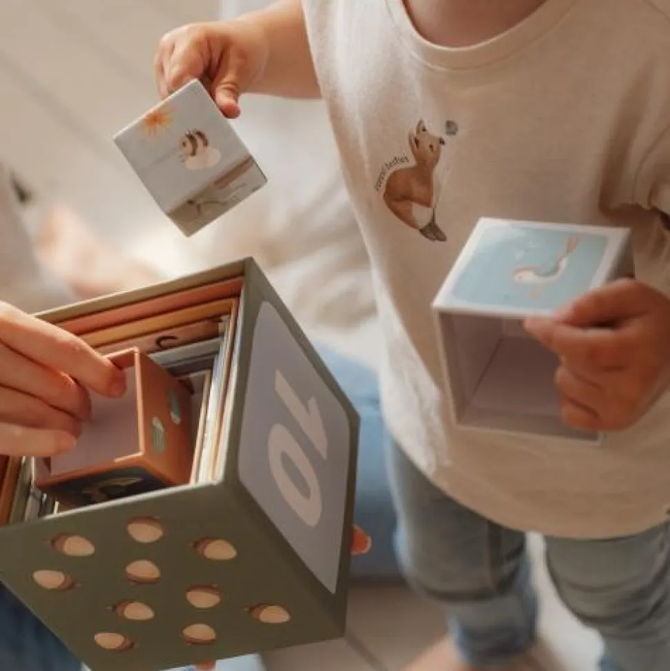 Stapel het ene blok op het andere en zie de magie van Forest Friends groeien! Je kunt de blokken op elkaar stapelen om een hoge toren te maken of ze horizontaal op de grond leggen. Ontdek vier betoverende taferelen terwijl je bouwt. Plaats het ene dier op het andere, van groot naar klein. Sorteer ze op twee manieren door te tellen, of verzamel alle afbeeldingen uit het betoverende bos. Kinderen leren spelenderwijs tot 10 te tellen met deze stapelblokken. De blokken zijn voorzien van prachtige illustraties uit de Forest Friends-collectie, waaronder eekhoorns, vossen, konijntjes, egels, uilen en paddenstoelen. Om ze gemakkelijk op te bergen, passen de kleine blokjes in de grotere. Gemaakt van stevig karton, kunnen de blokken tegen een stootje. Het kleinste blokje meet 5 cm en de grootste is 14 cm.