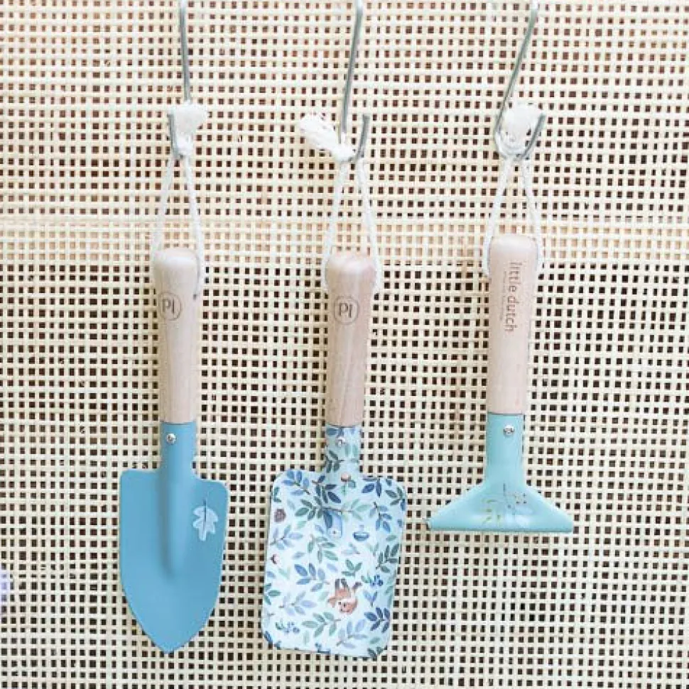 Ontdek de perfecte gereedschapsset voor kleine tuiniers met deze prachtige tuinset uit de Forest Friends collectie! De set bestaat uit twee schepjes en een hark, allemaal gemaakt van stevig metaal met houten handvatten voor een comfortabele grip. Elk stuk is versierd met mooie illustraties en kleuren uit de collectie, perfect passend bij de avonturen van je kleintje in de tuin. Met de handige koordjes kun je het gereedschap makkelijk ophangen na het tuinieren. Perfect voor kleine handjes.