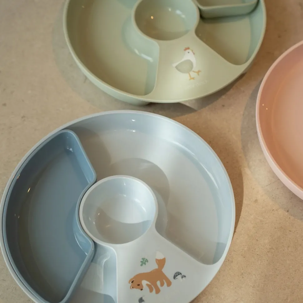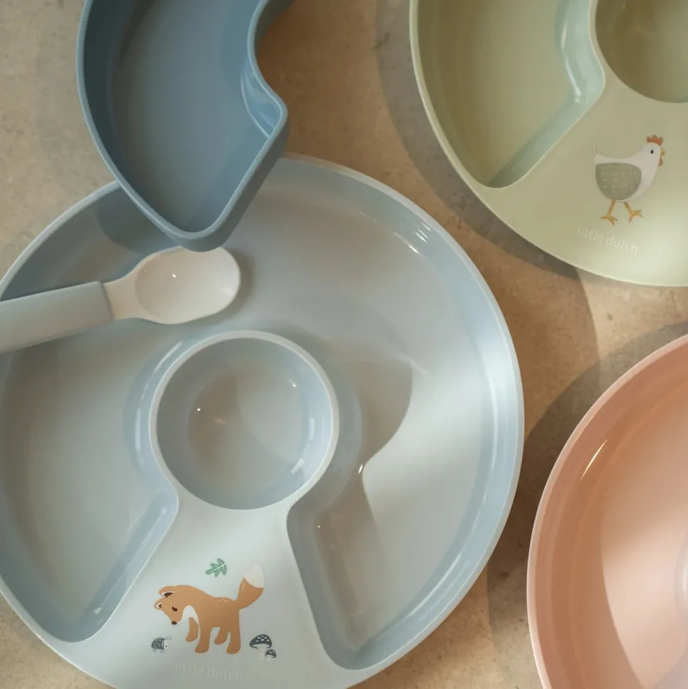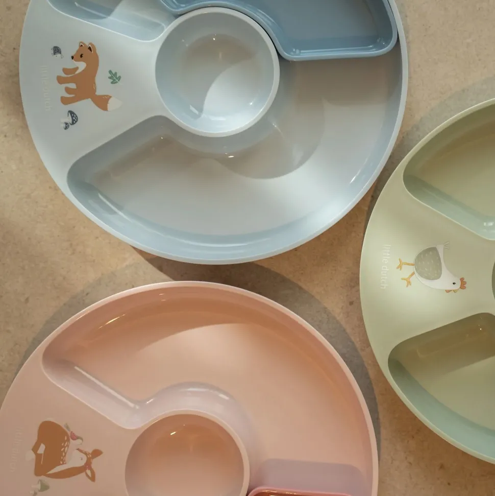 Zelf eten wordt een speels avontuur. Het Mepal Mio vakjesbord met het lieve Forest Friends printje van Little Dutch is speciaal ontworpen om kinderen te helpen zelfstandig te eten. De hoge randen en afgeronde hoeken maken het makkelijker om met een lepel of vork te oefenen, zonder te morsen. De antislipbodem zorgt ervoor dat het bord stevig op tafel blijft staan. Met het uitneembare compartiment deel je het bord in twee, drie of vier vakken – ideaal om verschillende smaken en structuren apart te houden. Het bord is gemaakt van duurzaam, BPA-vrij materiaal en geschikt voor zowel magnetron als vaatwasser. Het vrolijke bosdierenontwerp brengt extra plezier aan tafel, elke maaltijd opnieuw.