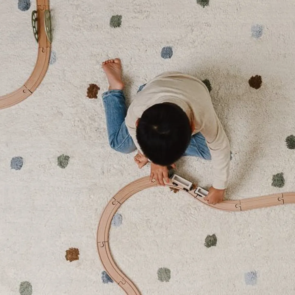 Voeg warmte toe aan de kinderkamer met een vloerkleed van Little Dutch! Dit vloerkleed heeft een beige basiskleur met vrolijke stippen in blauw, groen en okergeel. De kwastjes aan de korte zijden geven een speelse en gezellige sfeer in de ruimte. Gemaakt van 100% organic cotton en voorzien van een antislip latex achterkant, is het kleed zowel in de wasmachine als de droger te reinigen. Dankzij de zwaardere kwaliteit katoen heeft het een rijke uitstraling, en de aantrekkelijke prijs maakt het een geweldige keuze voor elk interieur.