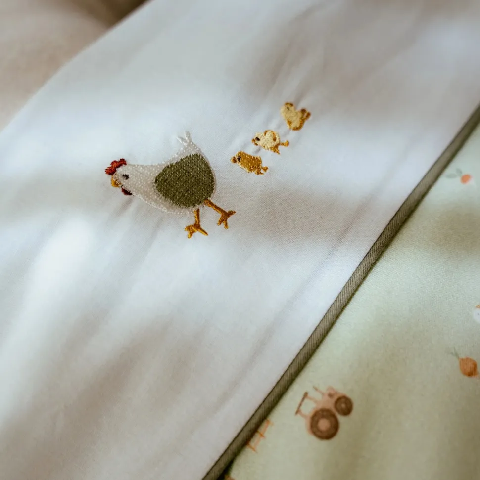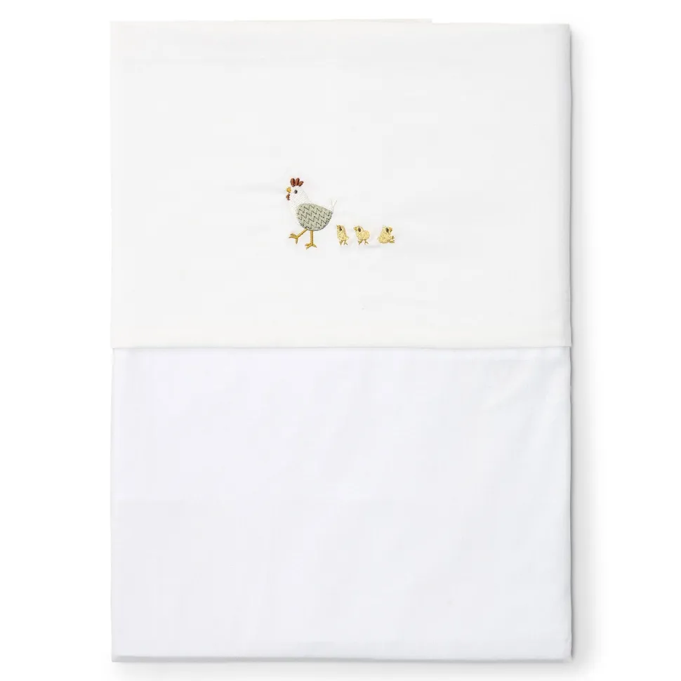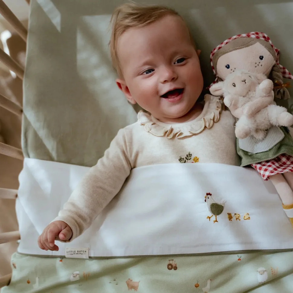 Dit prachtige wieglaken uit de Little Farm collectie heeft een charmant borduursel van een kippetje met haar kuikentjes. Het laken is gemaakt van 100% katoen en voelt heerlijk zacht en soepel aan, zodat je baby er comfortabel en rustig onder kan slapen. Een mooi opgemaakt bed creëert meteen een warme sfeer in de baby- of kinderkamer. Combineer het lakentje met een Little Dutch wiegdeken voor een perfect bij elkaar passende set die er niet alleen schattig uitziet, maar ook nog eens heerlijk knus is. Lief, zacht en stijlvol. Precies wat je kleintje verdient.